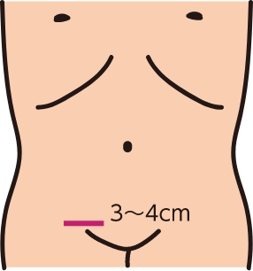 | 皮膚切開の 位置と大きさ (右側の場合) |