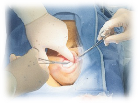4) 水腫の壁(精巣固有鞘膜)を切開して内容液を吸引する。